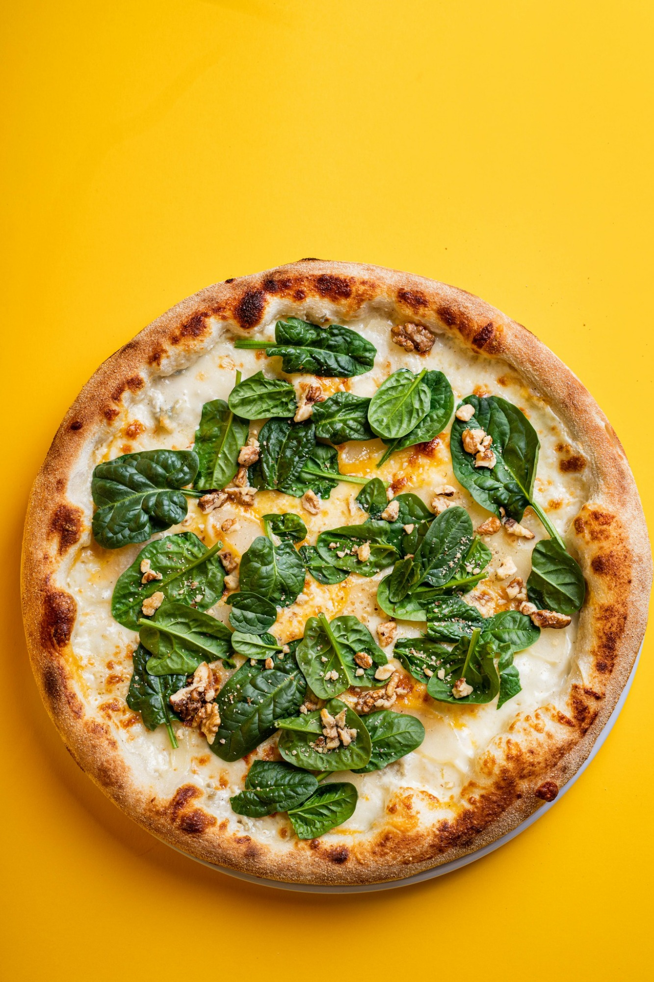 gorgonzola, gruszka, szpinak, orzechy włoskie, sos śmietanowy -